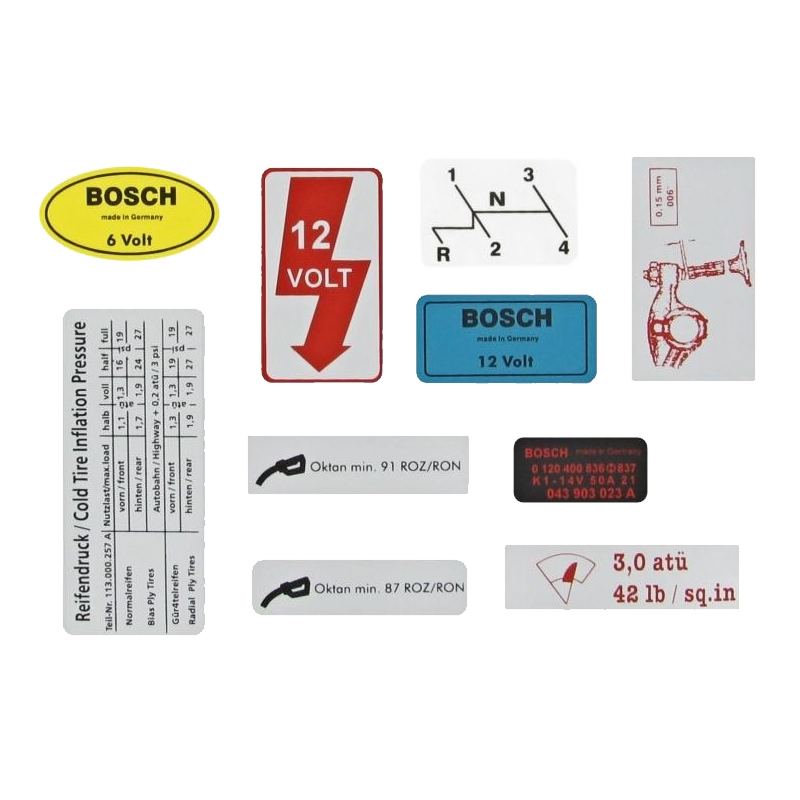 1 Satz Aufkleber zur Restauration vom VW Käfer, VW T1, Karmann Ghia, VW T2, VW Kübel